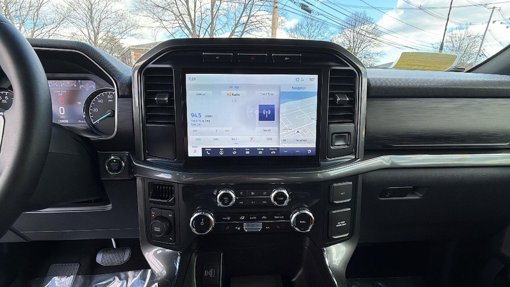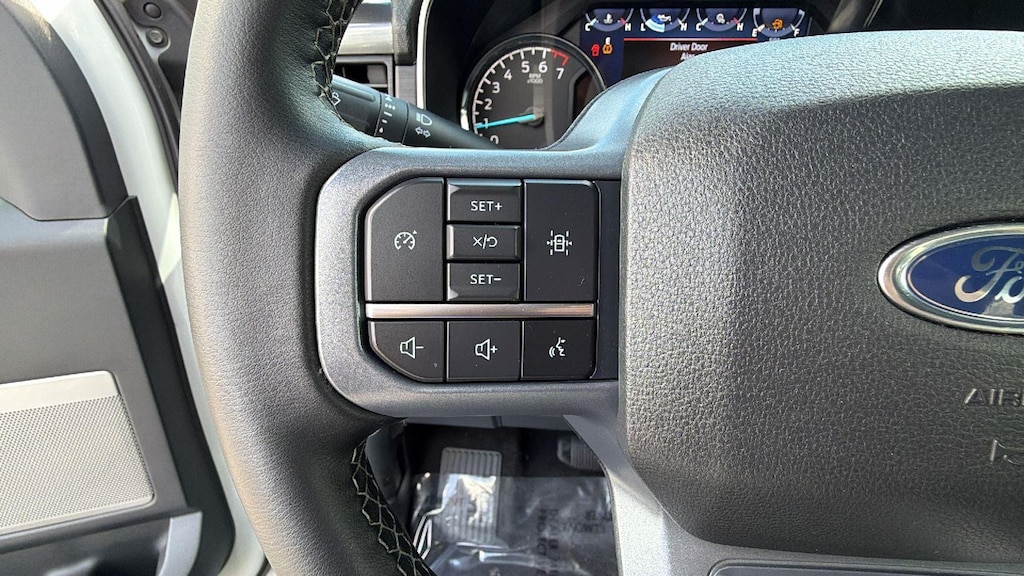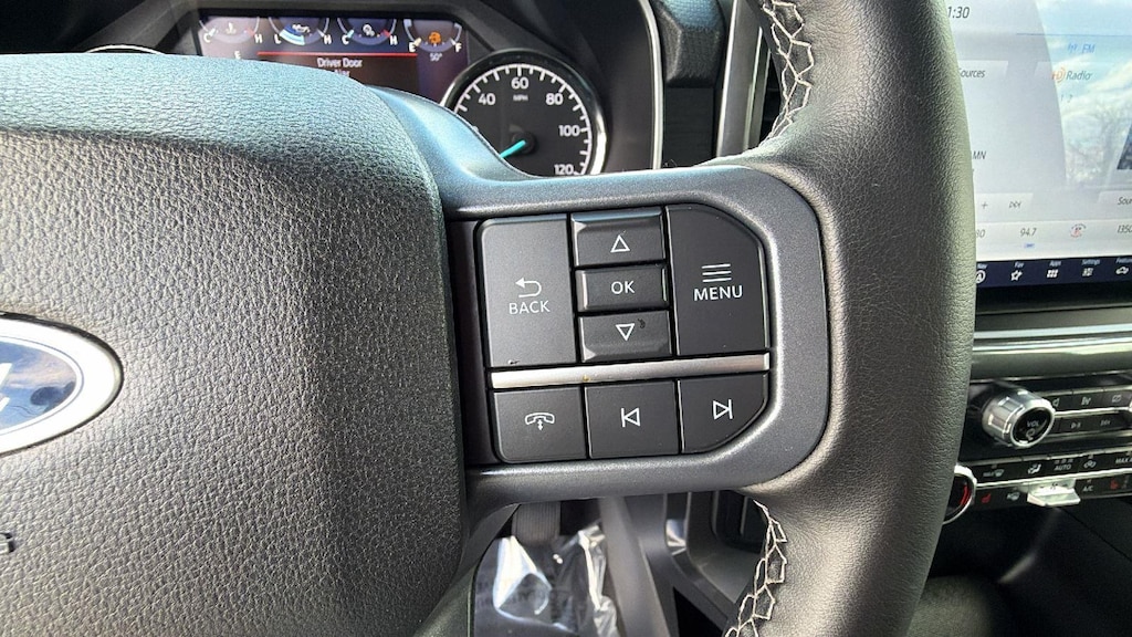 - Includes vehicle with standard equipment, SYNC 4 with enhanced conversational voice recognition, 12 in. LCD capacitive touchscreen, information on demand panel, 8 inch productivity screen in instrument cluster, SiriusXM with 360L, connected navigation, wireless Apple CarPlay, wireless Android Auto, cloud connected, AppLink, 911 Assist, 7 speakers, digital owners manual, dual-zone electronic automatic temperature control, 10-way power adjustable front seats with power lumbar adjustment, heated front seats, leather-wrapped steering wheel, rear under-seat storage, 110V/400W outlet in the instrument panel and pickup bed, auto-dimming rearview mirror, manual-folding power heated side view mirrors with LED integrated turn signals and security approach lamps, LED reflector headlamps, LED cornering fog lamps, Intelligent Access with push button start, remote engine start, remote tailgate release, SecuriCode keyless entry keypad, Class IV trailer hitch, 4-pin and 7-pin wiring, and smart trailer tow connector.